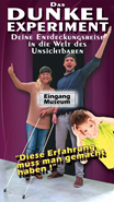 Das Dunkelexperiment, das Experiment der besonderen Art, denn es gibt „Nichts“ zu sehen. Jeder bekommt einen Blindenstock und eine Augenmaske und begibt sich dann auf einen Waldspaziergang, erkundet eine Wohnung oder besucht einen Supermarkt. So kann man den Alltag eines Blinden erleben. Es gibt Restlicht im Museum, so dass die Augenmaske bei Unsicherheit abgenommen werden kann.